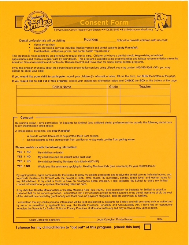 Dental Professionals will be visiting Roundup Elementary Schools to provide children with no -cost;